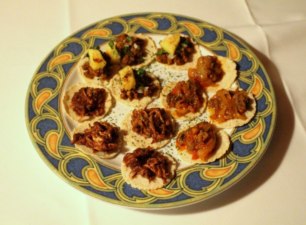 Ya en el comedor comenzamos el menú con una degustación de tres tacos, que podremos acompañar con salsa de tomatillo verde, de jitomate o unos jalapeños escabechados.
