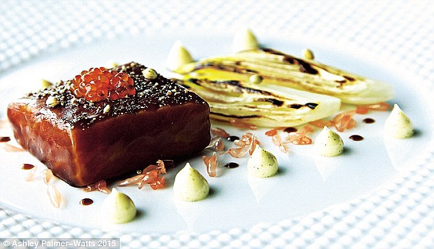 Todas las personas tenemos nuestro punto de vanidad y yo no iba a ser menos, sobre todo cuando te enteras que algo salido de tu creatividad, coincide con una elaboración parecida del tri-estrellado Michelín Heston Blumenthal del Fat Duck en Londres, de la que hasta la fecha nunca había tenido conocimiento, lomo de salmón envuelto en gelatina de regaliz, huevas de salmón, mayonesa de vainilla, pomelo y alcachofas.