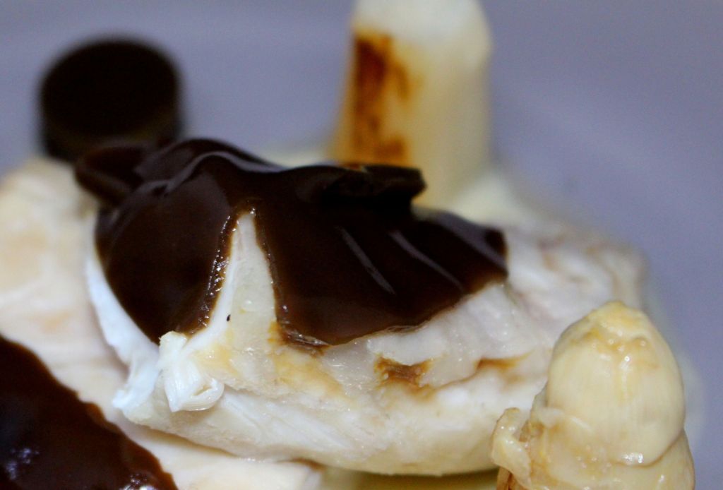 Cubrir la lubina con un velo de regaliz parecía algo descabellado hasta que recurrí al famoso libro de la Enciclopedia de los Sabores en busca de algo de luz. La primera referencia me lleva a la página 225: «Igual de sensacional, pero más fetichista que rústico, es el salmón de Heston Blumenthal en un gel negro de regaliz, espeso y reluciente, una receta que ideó cuando estaba estudiando la combinación espárragos-regaliz.»