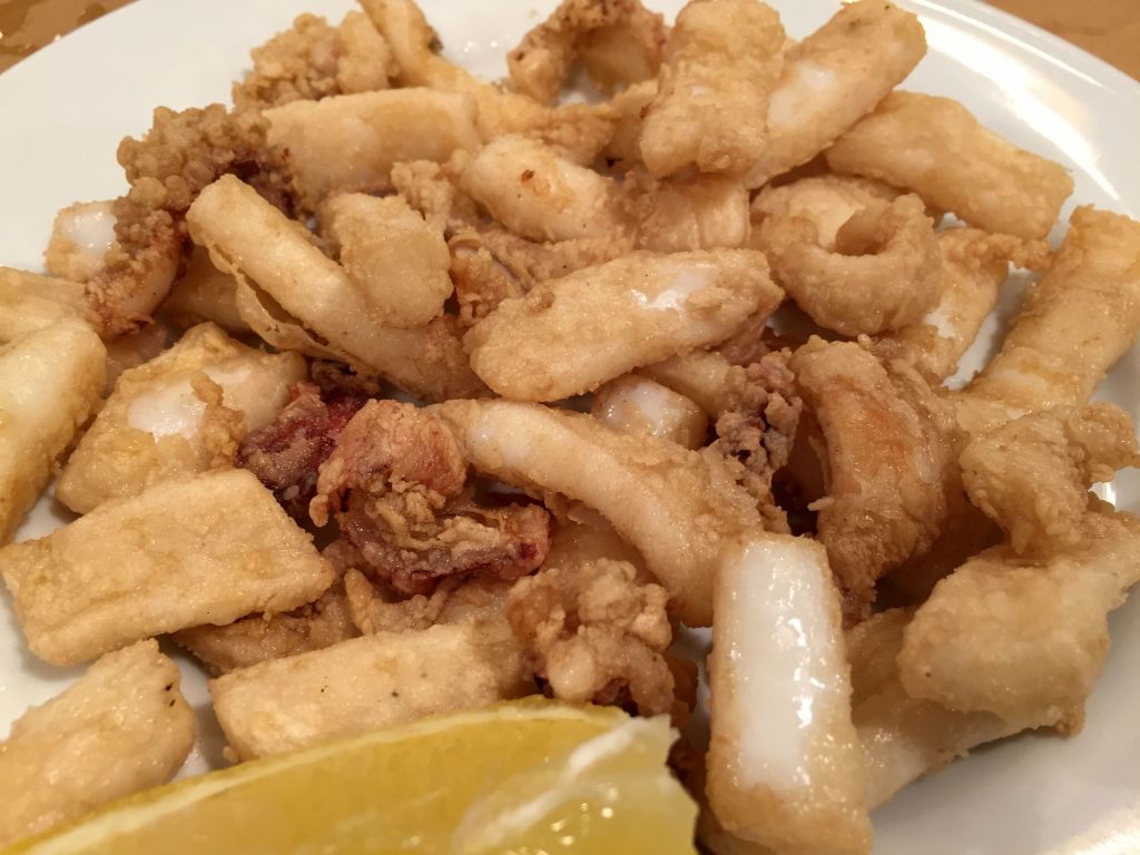 Calamares frescos fritos. Un capricho personal, estando en las previas en el chigre me vino un olor que ya indicaba que los calamares serían buenos.