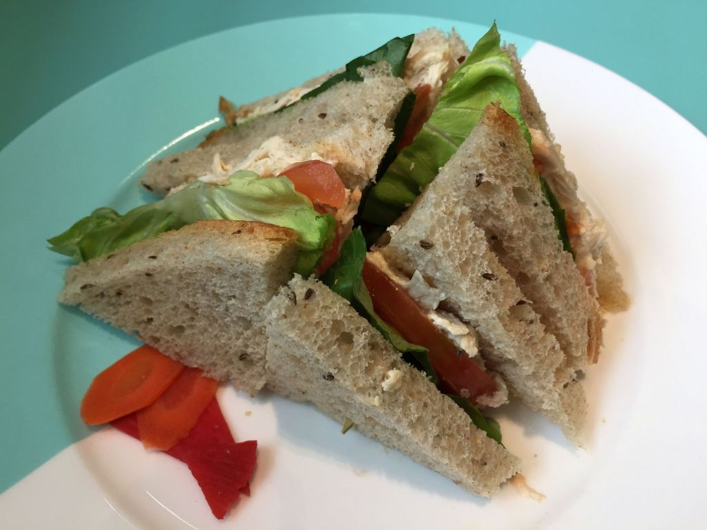 El principal elegido fue el Charles Lewis Tiffany CLT Club Sandwich, nada del otro mundo en este sandwich de pollo con lechuga y tomate en pan de centeno, pero al menos me llenaría más que la ensalada de langosta o las otras opciones.