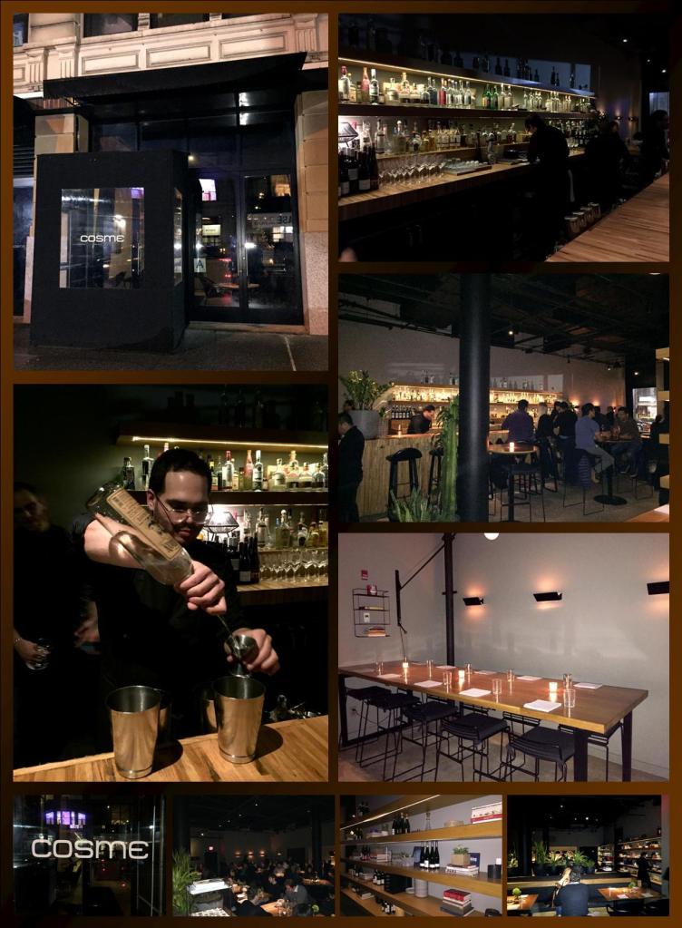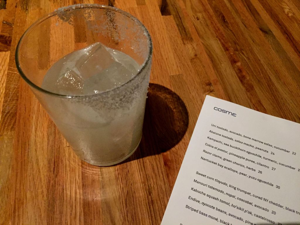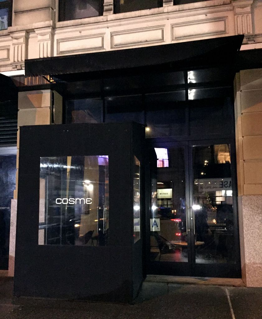 Llegamos al Madison Square Park, el inquietante Flatiron al frente, continuamos por Broadway hasta girar a la izquierda de la 21St y encontrar la puerta del Cosme en su número 35 East. Cansados del viaje y anticipándonos a la reserva, fueron muy amables al ubicarnos en nuestra mesa antes de tiempo.