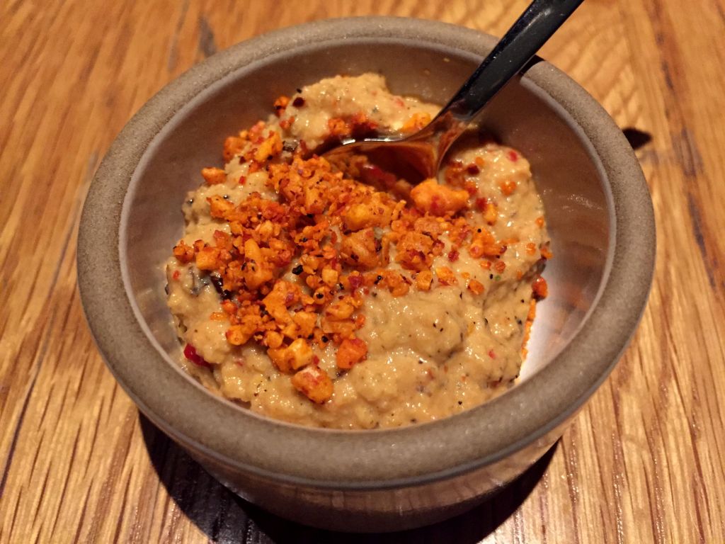No hay comida mexicana que se precie sin un acompañamiento de guacamole, este resultó fabuloso, acompañado de unos chips muy originales y un majado de almendra marcona con chile árbol. Su excelencia he de compararla con aquel de Roberto Ruiz que me habían preparado en directo en Punto MX.