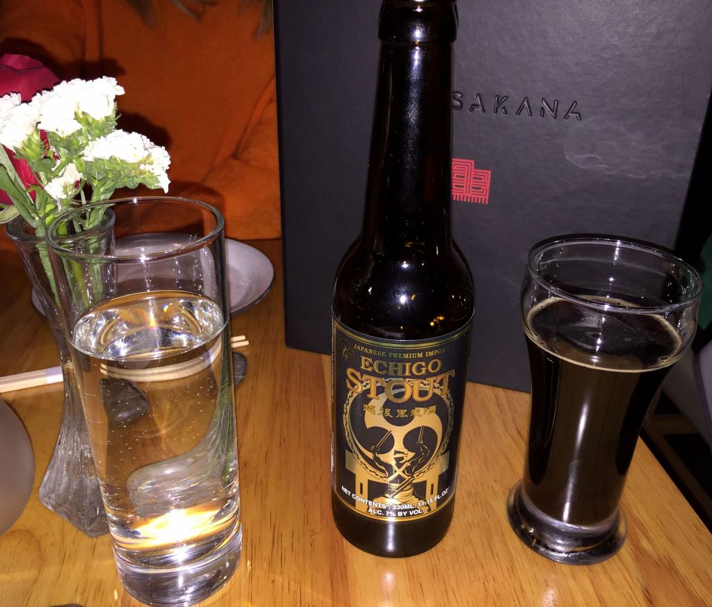 Para beber, resulta que no era mi día para visitar un casino. De las nueve opciones disponibles voy y elijo dos que no tenían, me quede sin la lager limeña Cusqueña y la IPA de Captain Lawrence, así que la selección fueron la Sansho, una tipo ale japonesa de Itawe y una tipo stout de Niigata llamada Echigo.
