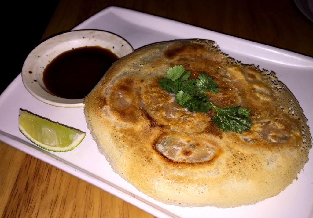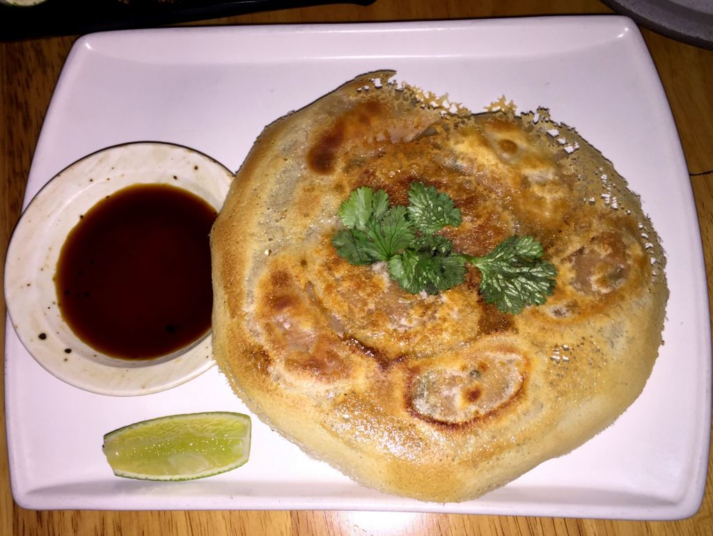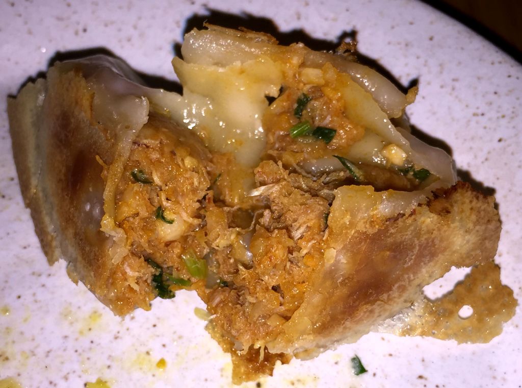 Dejamos los platos fríos y pasamos a unas gyozas con velo crujiente rellenas de gamba y cangrejo con lima, salsa ponzu y cilantro.