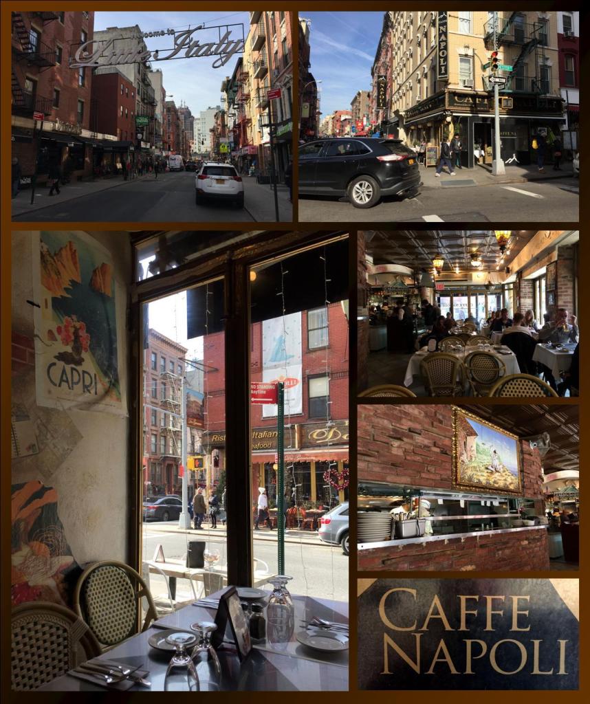Quizás por ese trasfondo cultural tan parecido, los barrios de Little Italy y China Town se circunscriben a una misma zona de la ciudad, pegados el uno al otro pasamos de puestos callejeros de verduras y frutas, pescaderías, herboristerías a doblar una esquina y encontrarnos con pizzerías, trattorias, o caffes como el Napoli.