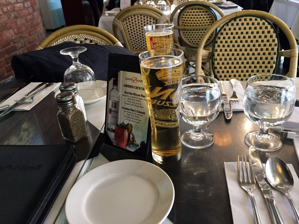 En este día, ya necesitábamos «sentar el culo». Por no aguantar a la pléyade de comerciales a pié de restaurante vendiéndonos las excelencias de su carta a poco que echabamos un vistazo en sus vitrinas o pizarras, sin mucha dilación entramos en el Caffe Napoli.