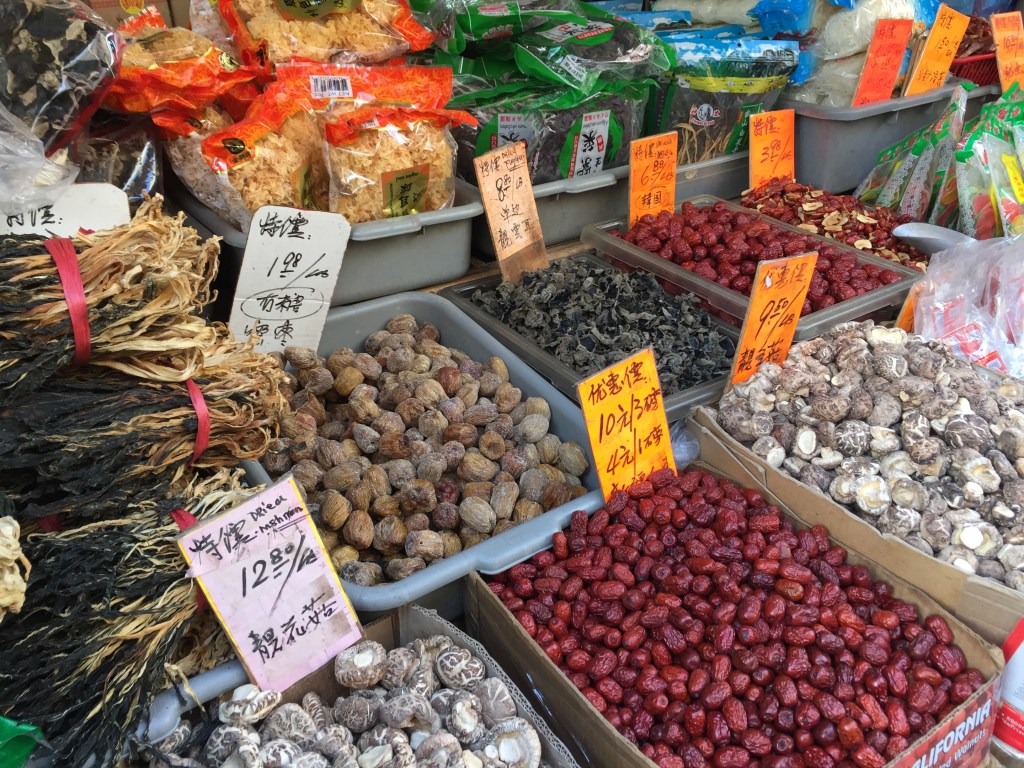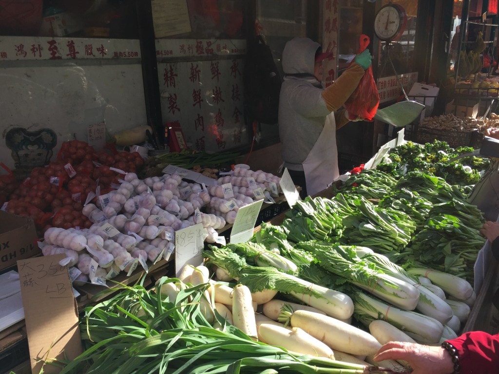 Hacemos una incursión entre las calles y parece que estamos en China, mucho puesto callejero de frutas, verduras, pescado…etc.