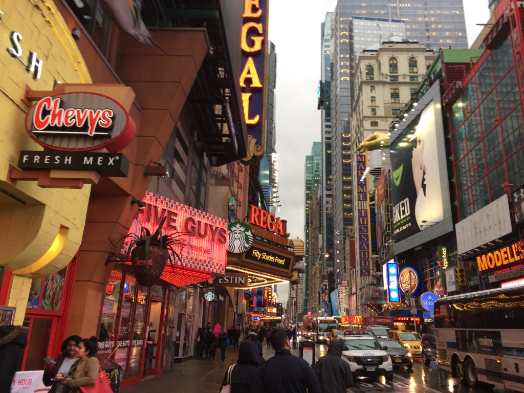 Por llevar un cierto orden de norte a sur de Manhattan, ahora toca hacer parada en Times Square. Un lugar bullicioso donde casi todo el mundo es turista, ya sea procedente del extranjero o del mismo Estados Unidos. Las luces parpadeantes y brillantes de sus luminosos han creado de esta plaza un sitio de parada obligada.