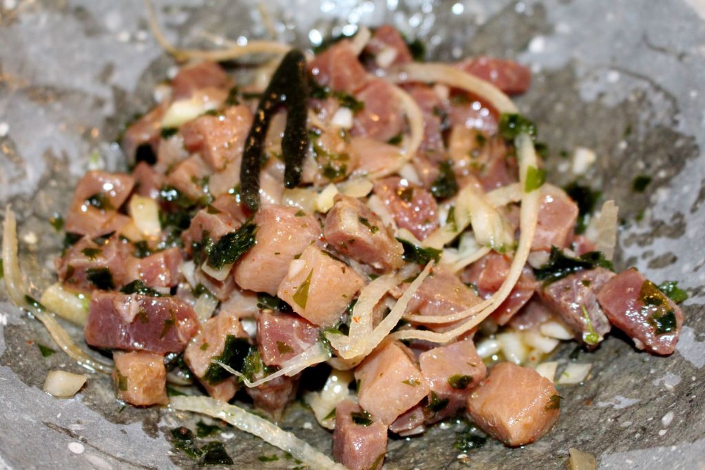 Atún al momento, aliño balinés y cebolleta. Refrescante, con esos toques del sureste asiático como el aceite de sésamo nos transporta a otros continentes.