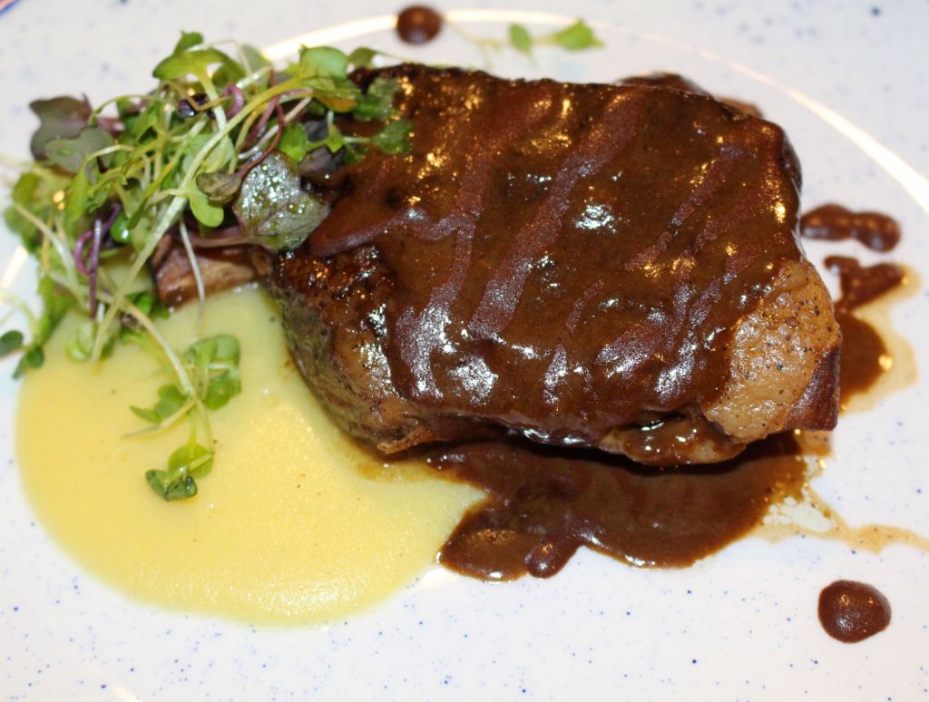 Finalizamos con la costilla de Angus con mole poblano. Cocción a baja temperatura hace que la costilla se despegue del hueso como mantequilla, ese aporte de grasa interior la hace deliciosa con una salsa de mole que acompaña muy bien.