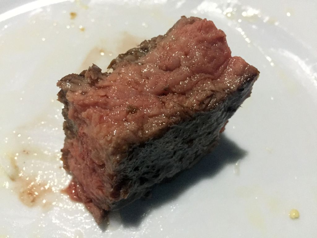 Los chuletones, fueron varios, resultaron irregulares. Unos mejor hechos que otros, personalmente creo que les faltaba grosor aunque el sabor de la carne era bueno, un sabor con maceración, fuerte, con una grasa sabrosa.