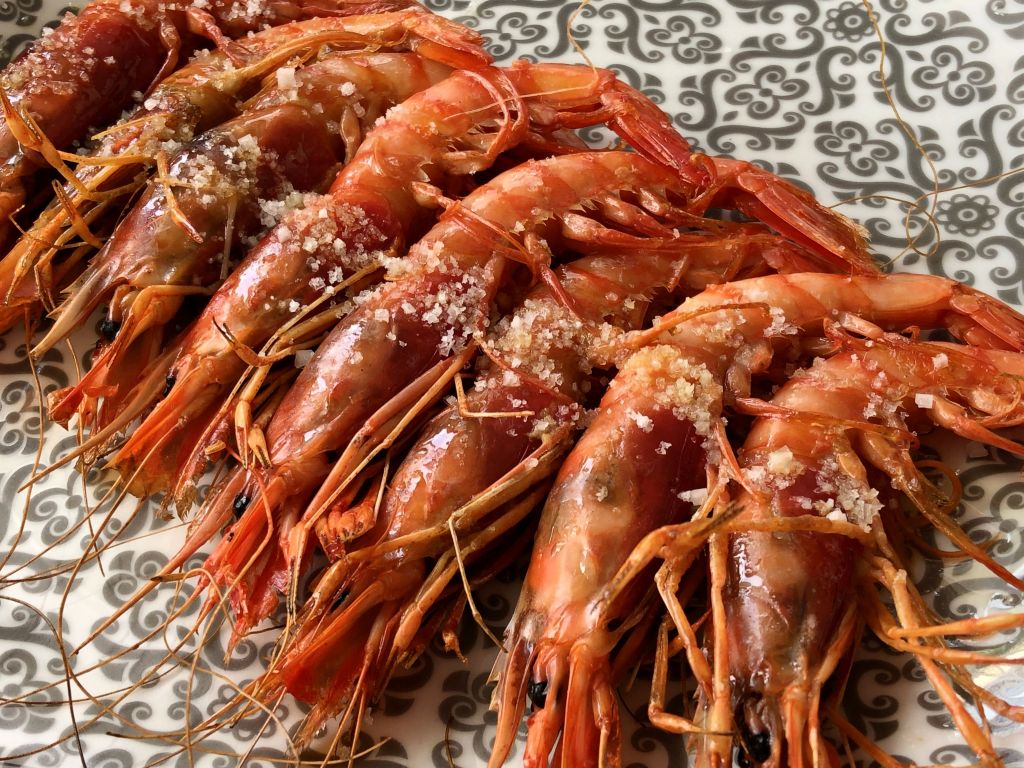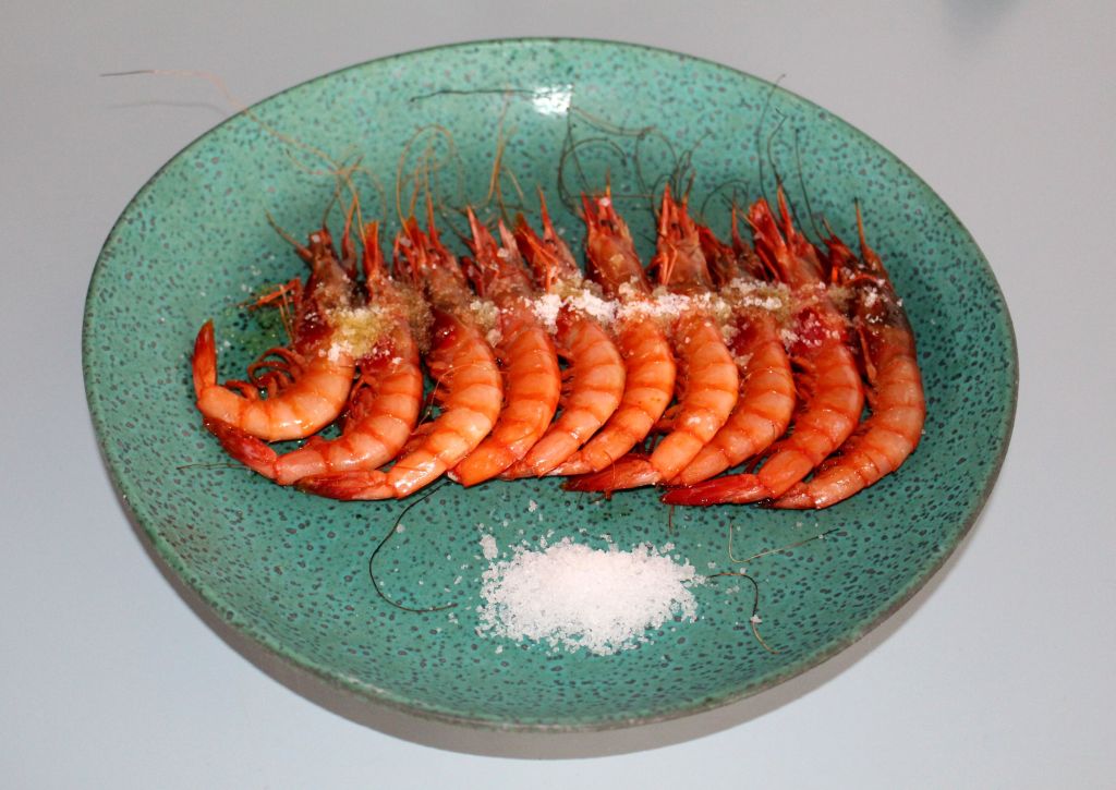 Comenzamos con unas gambitas de Huelva a la brasa. No podían estar más frescas y bien hechas y como veis el pan resulta muy útil.