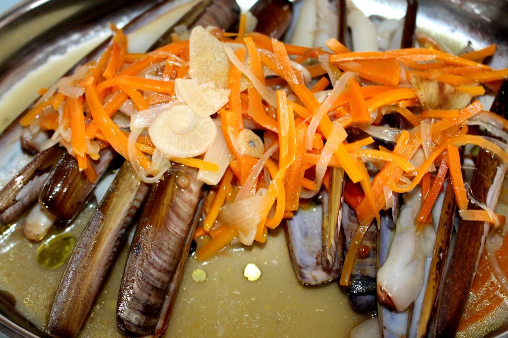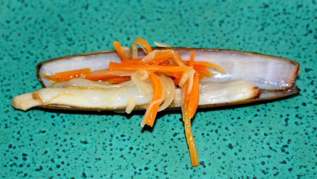 Lo siguientes fueron unas navajas con escabeche tibio de sidra. Abundante, con mucho sabor, las navajas de muy buen tamaño y el juguillo mezclado con el escabeche, la piscina ideal para hacer barquitos.
