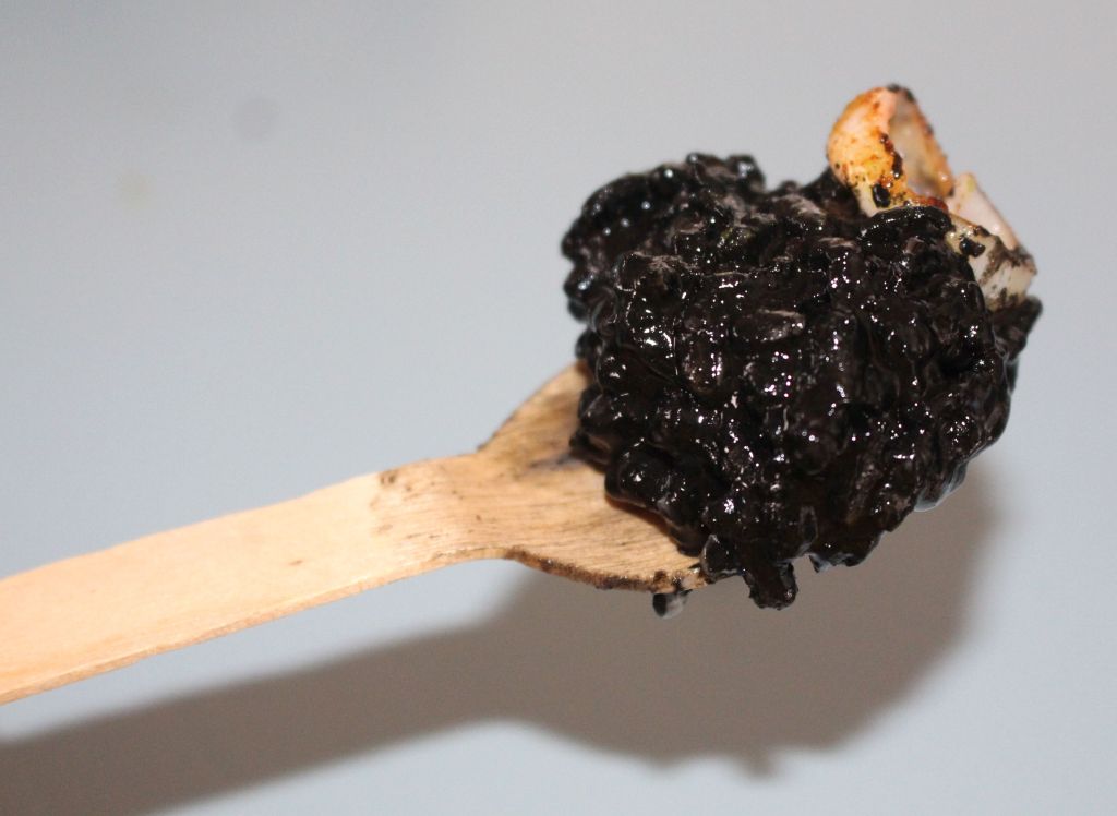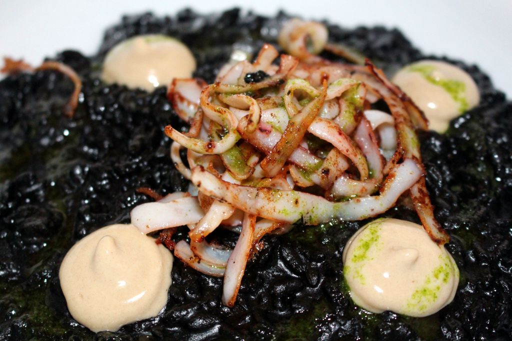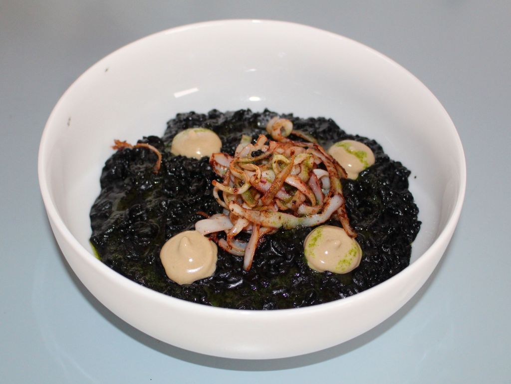 Los arroces elegidos fueron un arroz negro meloso con sepia y all i oli de ajo negro. Para este utilizan la variedad Bahía de L’Estany de Pals, de Gerona. Super cremoso, muy negro, excelente.