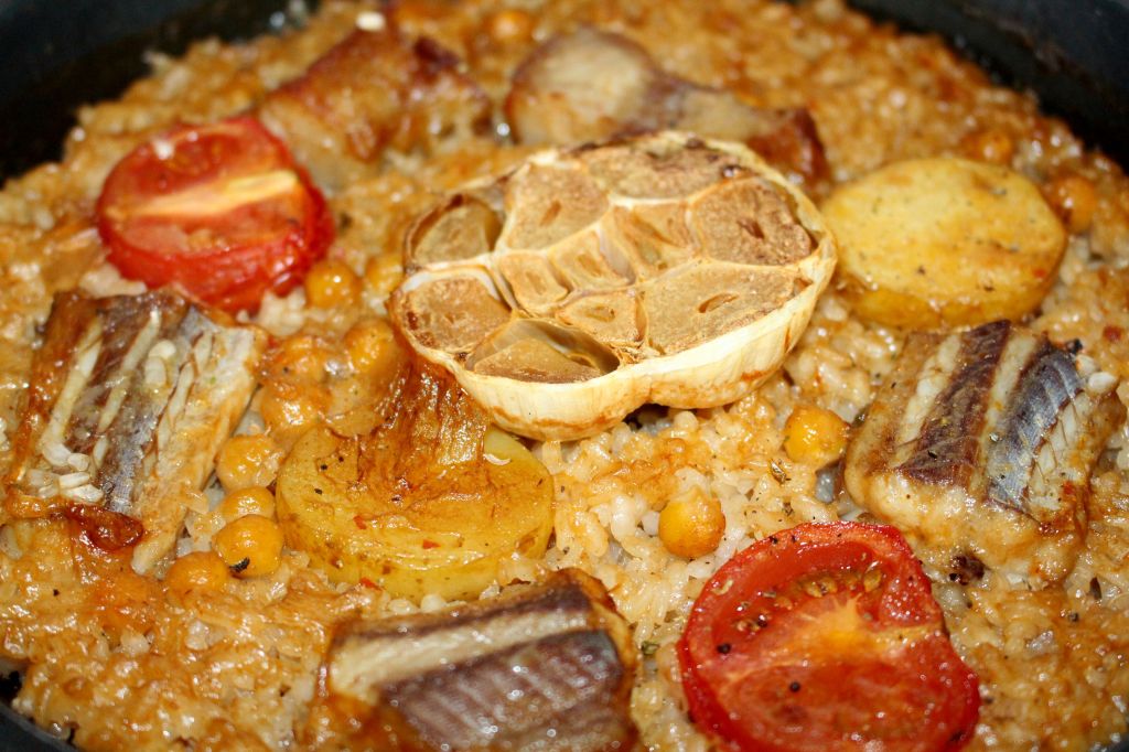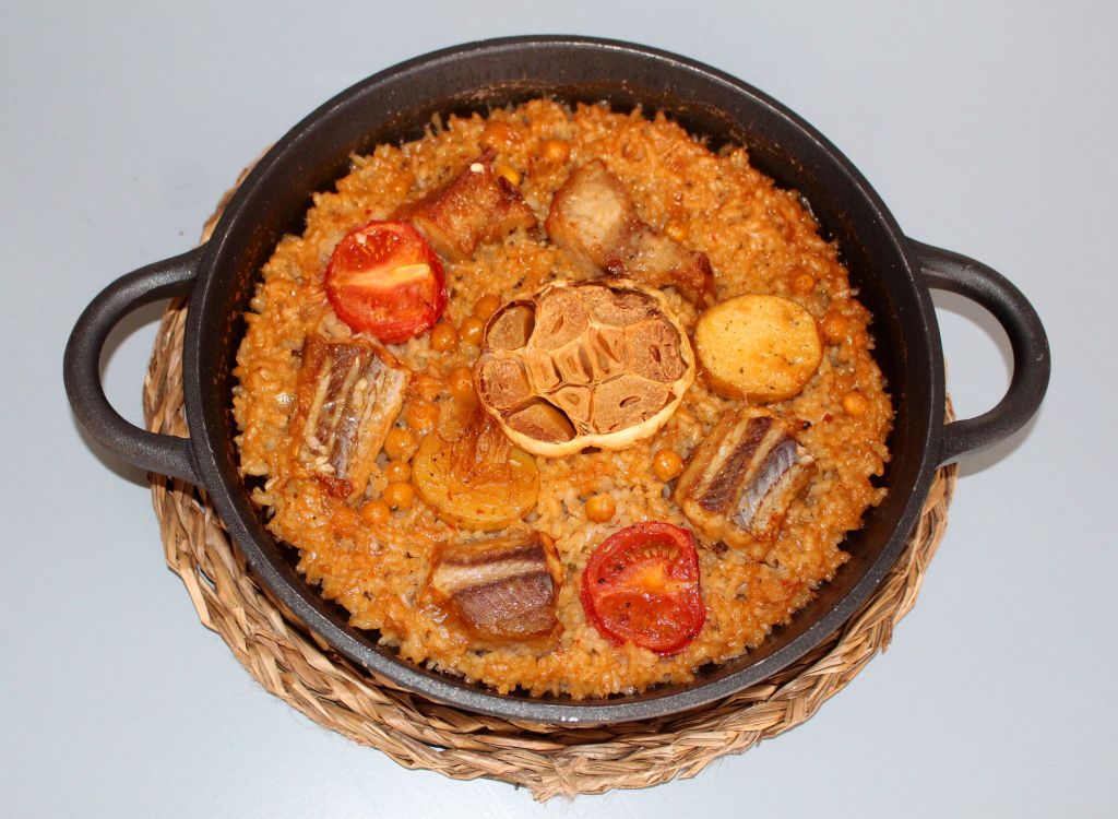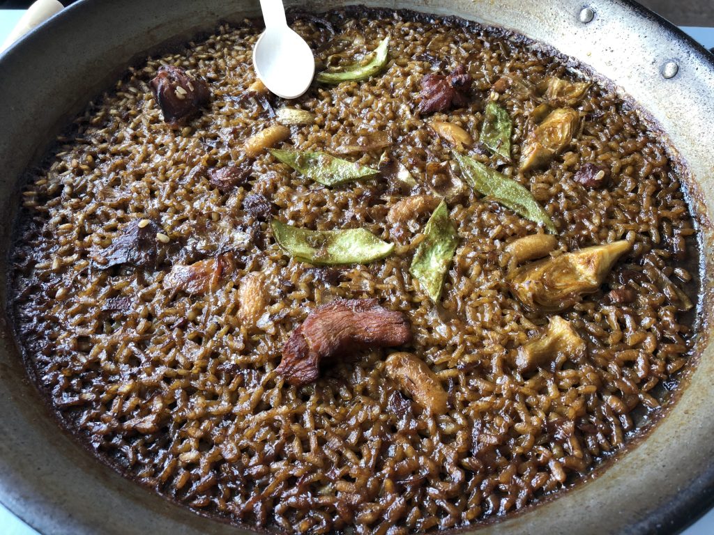 Los arroces fueron todos nuevos descubrimientos, no repetimos ninguno de la vez anterior. El primero de ellos una paella valenciana hecha con la variedad Gleva, entre sus ingredientes están el pitu de caleya, pato, faba, judía verde y alcachofa.