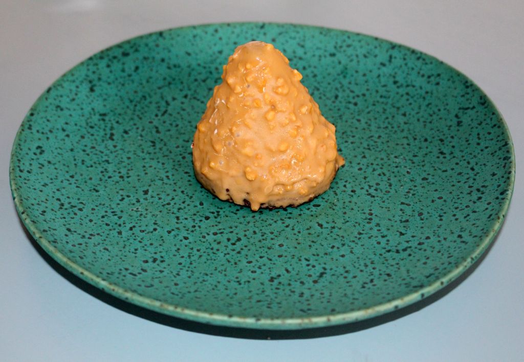A los postres volví a revivir un clásico que se ha ido perdiendo en muchos restaurantes, el carrito de los postres. Aquí vienen presentados en una bandeja y el elegido fue el mousse de chocolate relleno de melocotón.