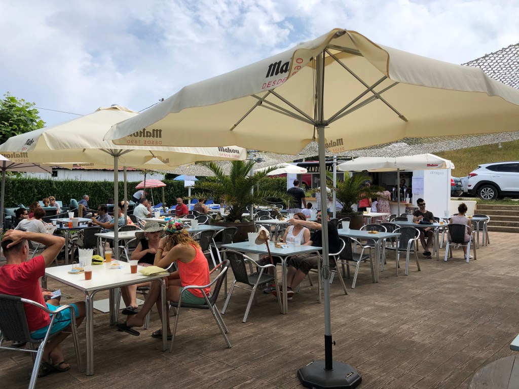 Domingo, día de perros, lluvia y 13º no fueron obstáculo para encontrar un lleno total, preludio de lo que acontecerá a lo largo de este verano. La estampa que nos encontramos resultaba desangelada, el restaurante cuenta con dos amplias áreas al aire libre que tenían recogidas mesas y sillas, aunque es fácil imaginárselas abarrotadas a poco que el tiempo mejores cinco grados.