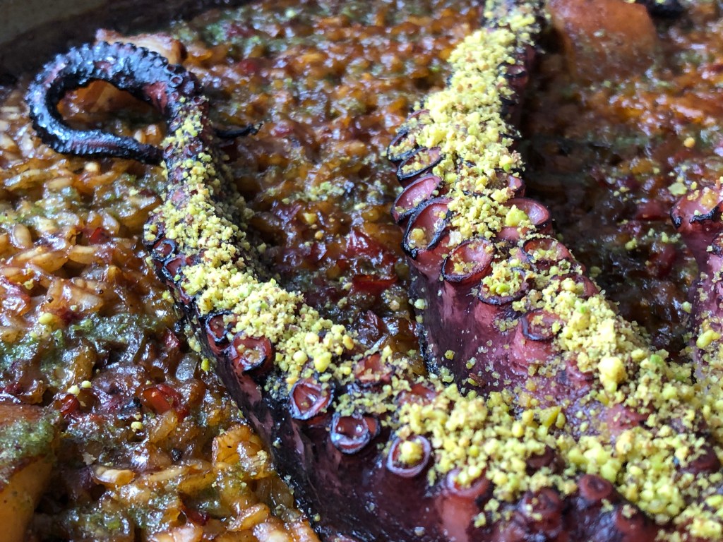 Aunque obviamente probé de todos para poder dar el veredicto, yo me incliné por el arroz con pulpo de pedreru, papada, salvia y pistachos.