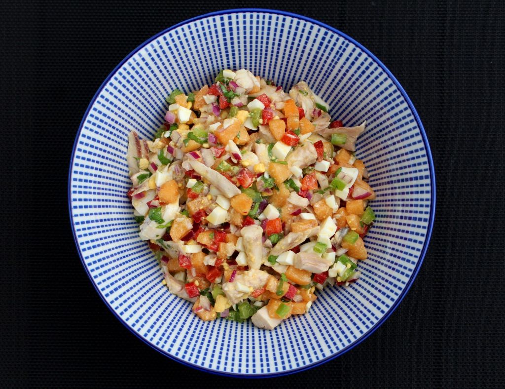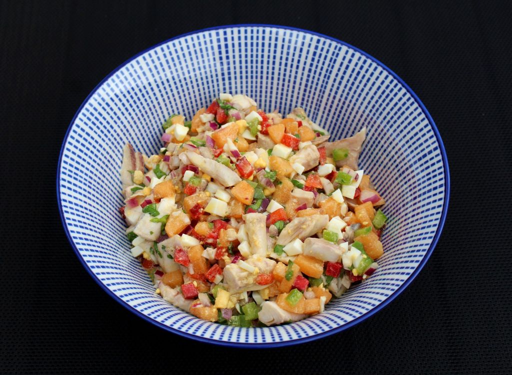Ahora añadimos el pescado y ponemos un poco mas de aliño. La razón por la que lo hago así, es para no tocar demasiado el pescado y evitar que con las mezclas acabe desmenuzándose más de la cuenta. Servimos en un bowl.