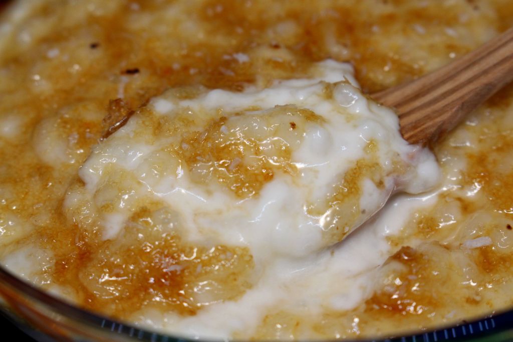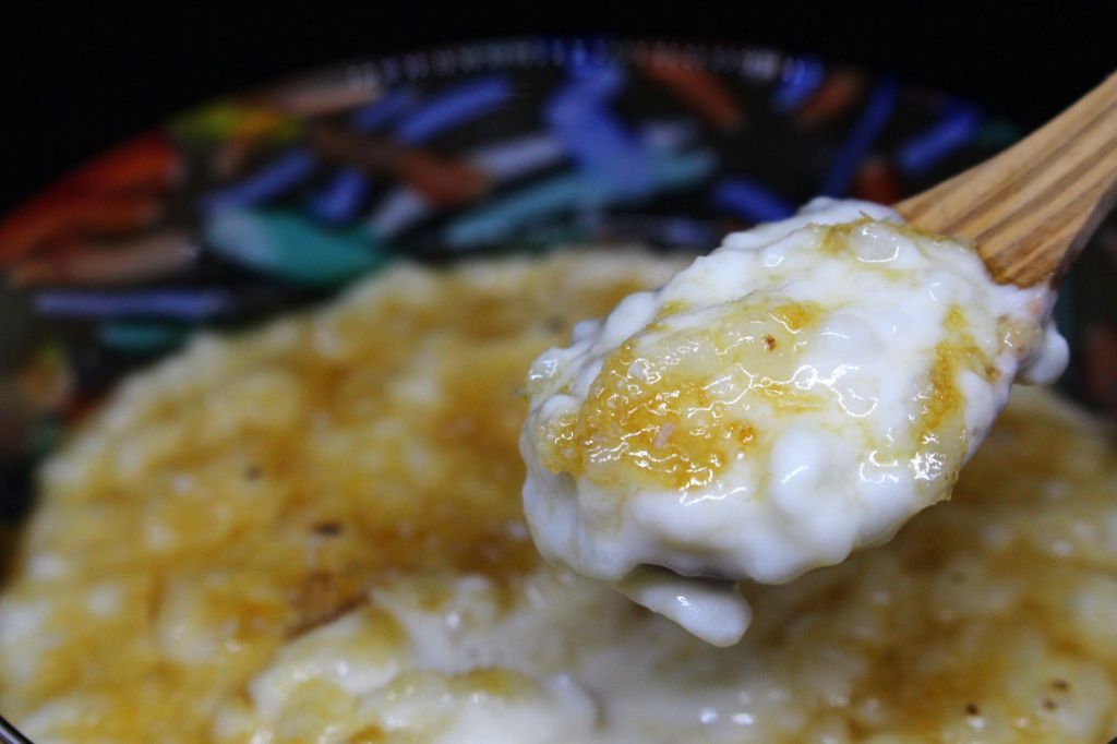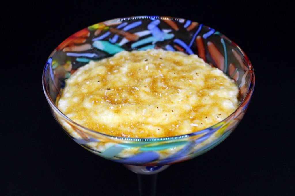 El arroz seguirá absorviendo la leche por eso se retira habiendo cierta cantidad de leche, de lo contrario os quedará un mazacote nada cremoso. Ya atemperado lo repartimos en cuencos para servir o en botes para hacerles el vacío y conservar, refrigeramos en la nevera y antes de servir espolvoreamos una fina capa de azúcar moreno, requemamos y esparcimos un poco de coco rallado.