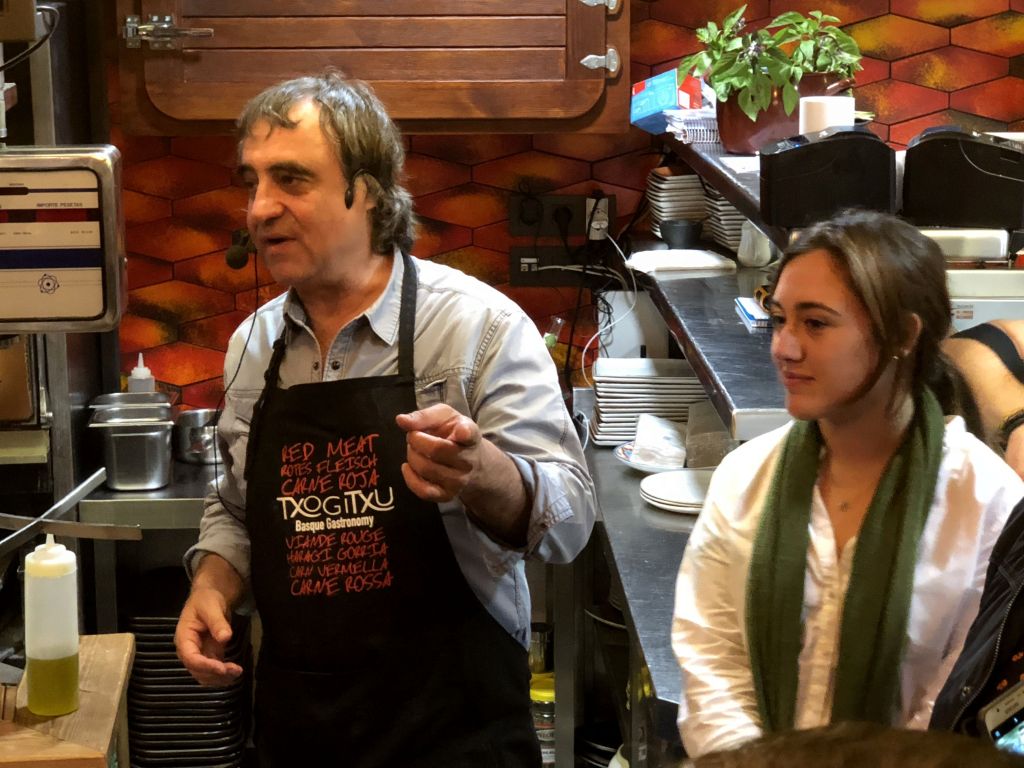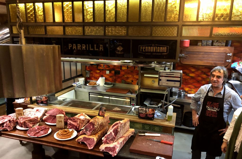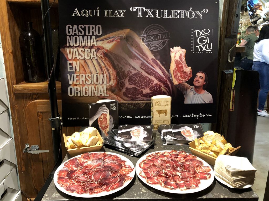 El muestrario de carnes que Txogitxu nos presentó fue todo un lujo para los sentidos. La vista se nos iba a esas grandes piezas, el olfato se encontraba con trabajo cuando las primeras gotas de grasa se fundían, el oído se afinaba con el crepitar, el tacto se convertía en la mejor forma de hacerse con un tozo de carne, y finalmente el gusto buscaba la siguiente pieza que echarse a la boca para conseguir el pleno deleite.