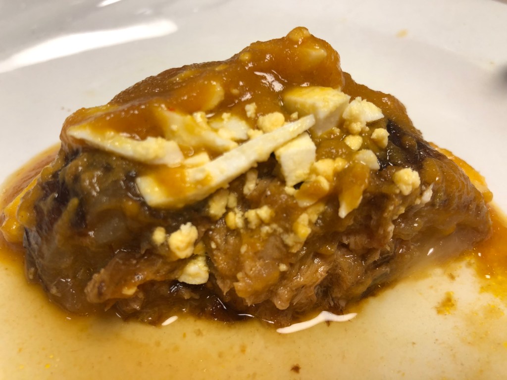 La cebollas rellenas de bacalao resultaron fantásticas, tenían ese punto medio caramelizadas y con abundante relleno. En la nueva visita el relleno era de bonito del norte fresco, una delicia para aprovechar el fin de la costera de este 2023.