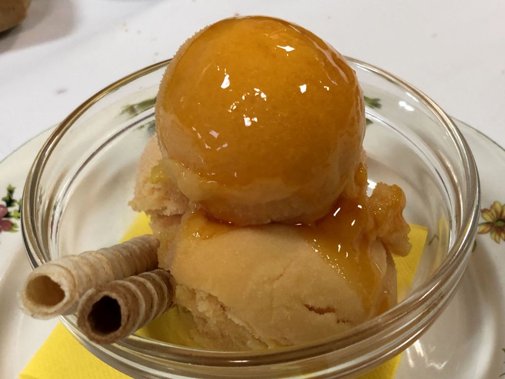 Las cuantiosas botellas de sidra nos subieron arriba y no perdonamos unos postres, una crema de arroz con leche y chocolate blanco, la tarta de la abuela y algo de helado para refrescar.