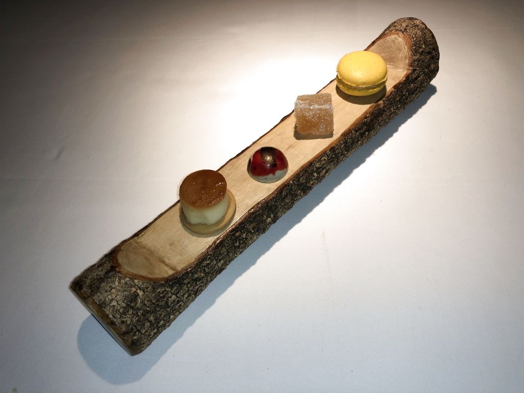 Con el café nos sirven los sorprendentes petit fours, elaboraciones típicas de macarons, trufas, gominolas caseras, bombones rellenos, bizcochitos, etc. Lo curioso de La Bicicleta, nunca lo había visto y ya llevo unos cuantos Michelín, es que vienen con un carrito lleno y tu eliges los que más te apetezcan.