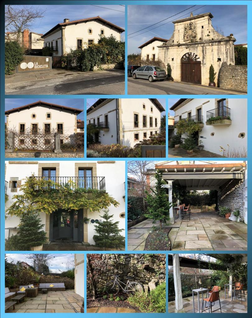 La casona de La Bicicleta es fácilmente identificable, se encuentra pegada a otra casona con un gran arco de piedra y escudo heráldico. En el exterior tenemos dos zonas, una de bancos y otra cubierta por una pérgola con sillas altas. Nos adentramos puntuales a la hora de apertura y a mano izquierda observamos una gran cocina abierta, buena música ambiental y a la derecha el comedor principal que se encuentra semi abierto, dando más amplitud a un espacio diáfano.