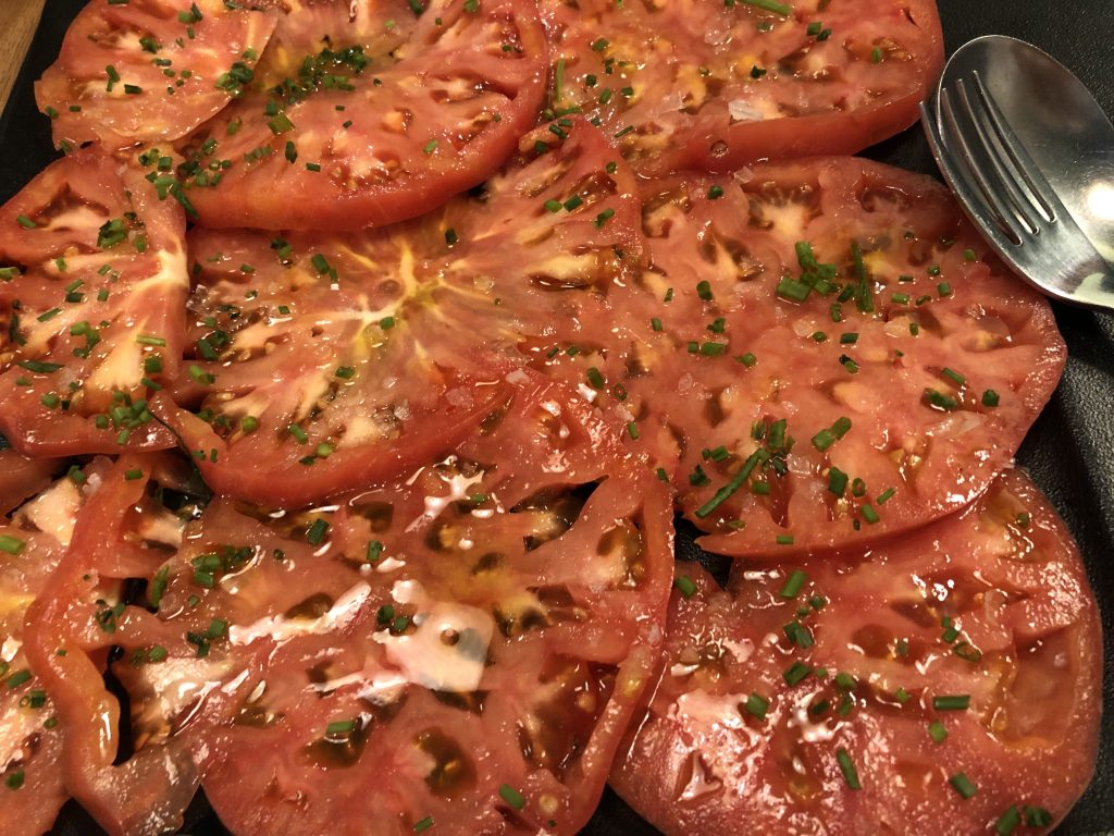 En la barra tenían unos tomates estratosféricos y por supuesto una ensalada de tomate fue una de las elecciones.