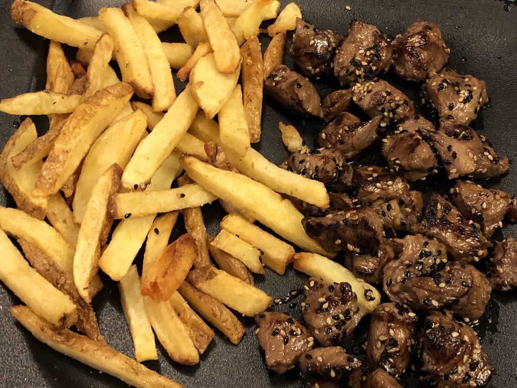 Finalizamos con el adobo de gochu de Grandas de Salime, que vuelven a marinar con salsa teriyaki y soja, un exceso redundante cuando el ingrediente principal de la salsa teriyaki es la soja. Quizas no sea el más adecuado para degustar una carne de buena calidad, funciona mejor con un pollo insípido.