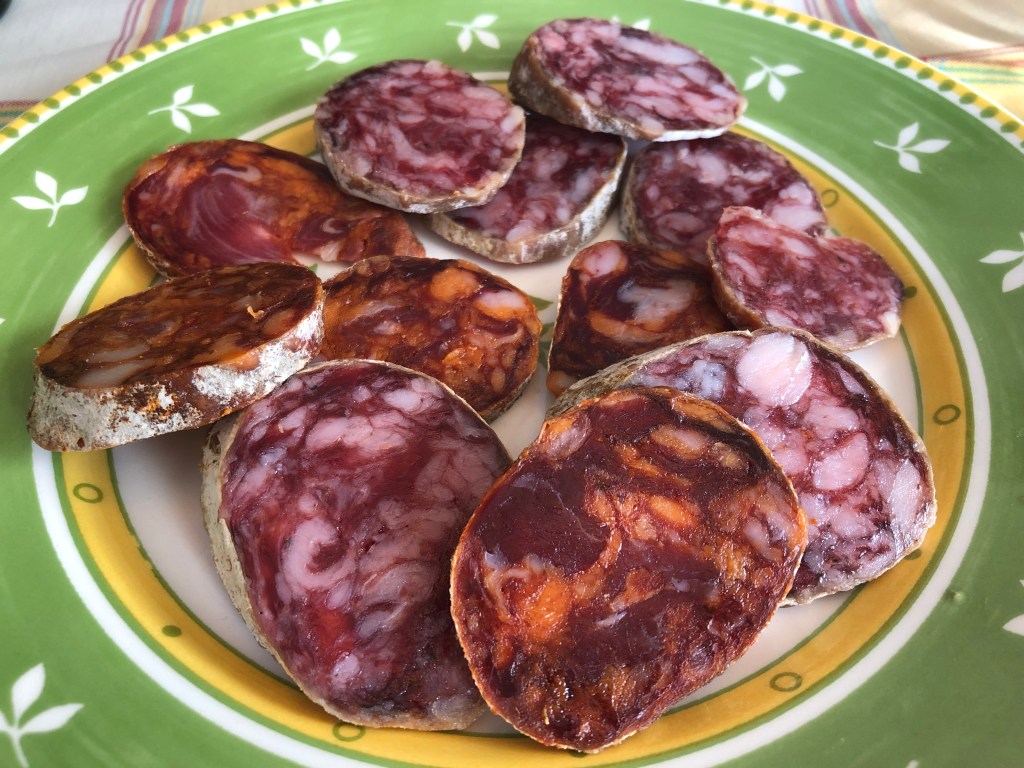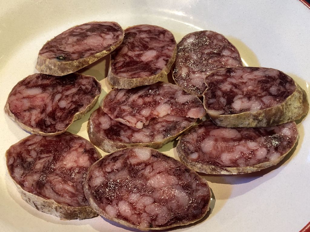 Chorizo y salchichón de primer nivel acompañan nuestra segunda botella de sidra mientras dilucidamos qué comer. Alex se encarga de explicar con pelos y señales cada uno de los platos, un nivel de implicación y conocimiento que ya no es fácil encontrar en los restaurantes.