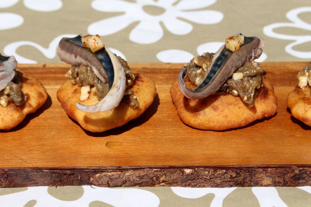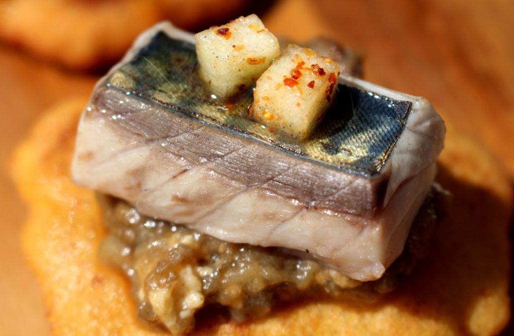Las recetas fueron unas sardinas al horno que pudiesen recordar a un espeto, con su ahumado; y unas sardinas marinadas sobre una ensalada de berenjena. Si tenemos en cuenta todo lo dicho al comienzo del artículo, no he querido fusilar sus recetas y he optado por una integración con mis toques personales, tirando un poco para la tierra al utilizar vinagre de sidra, queso Gamoneu y un pescado tan común aquí como la caballa o xarda.