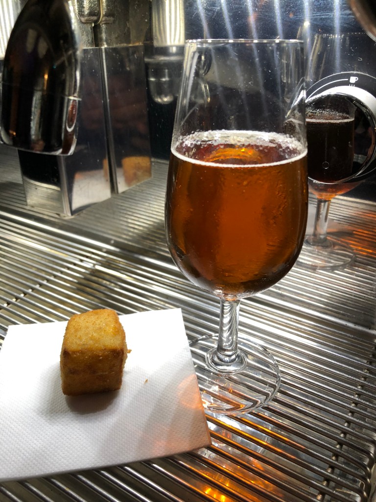 Estando en Casa Gerardo, no podía faltar su mundialmente reconocida fabada y no resulta nada fácil de maridar esta Tradición Vs Soda Schh. Un cocktail con base de Palo Cortado denominado Caipiroja hizo las delicias con esa croqueta de compango y su fabada a full.
