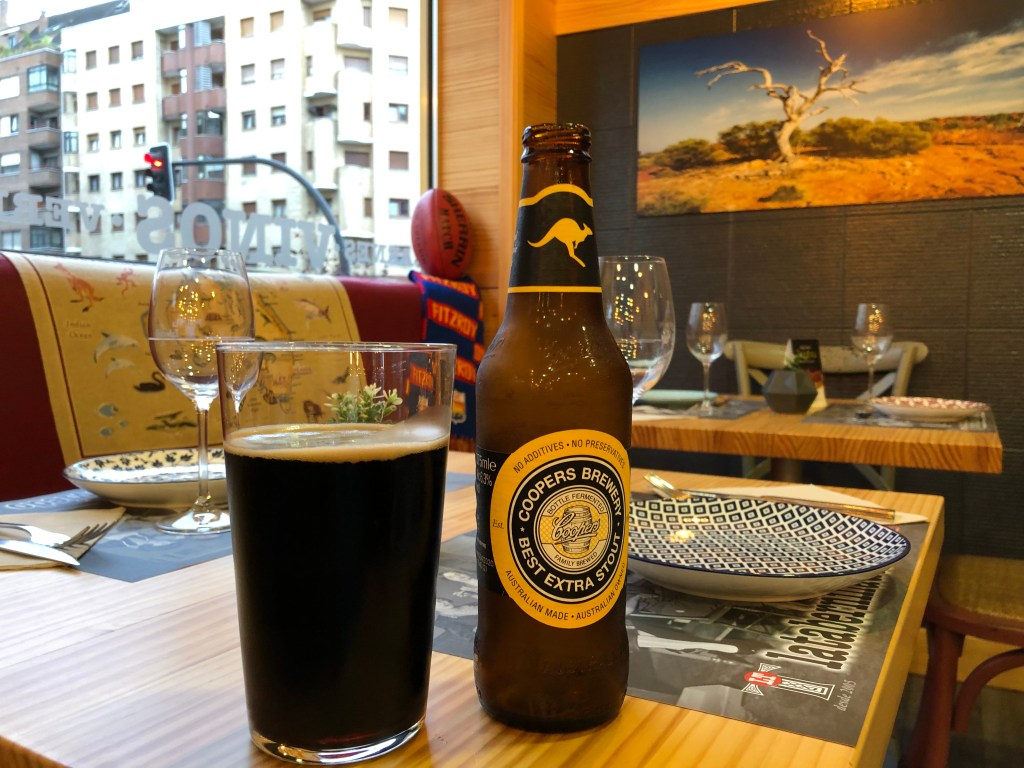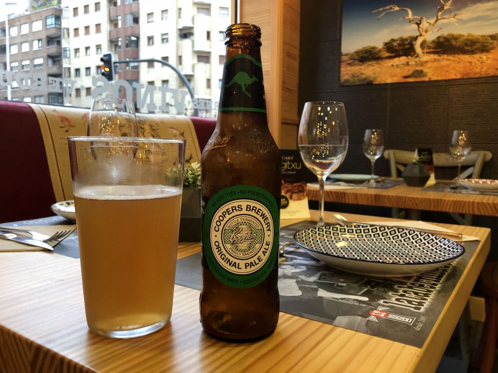 Pude observar en la barra que trabajan buenos pinchos y para los amantes del vino, se puede chatear por copas con referencias muy sugerentes que provienen de Australia, Sudáfrica, Italia o una variedad de DO españoles. Aunque si sois de cerveza, su selección de 17 variedades es muy amplia y nos hace viajar desde Australia con sus Coopers a Japón pasando por centro Europa, hasta llegar a la buena artesanal asturiana de Caleya.
