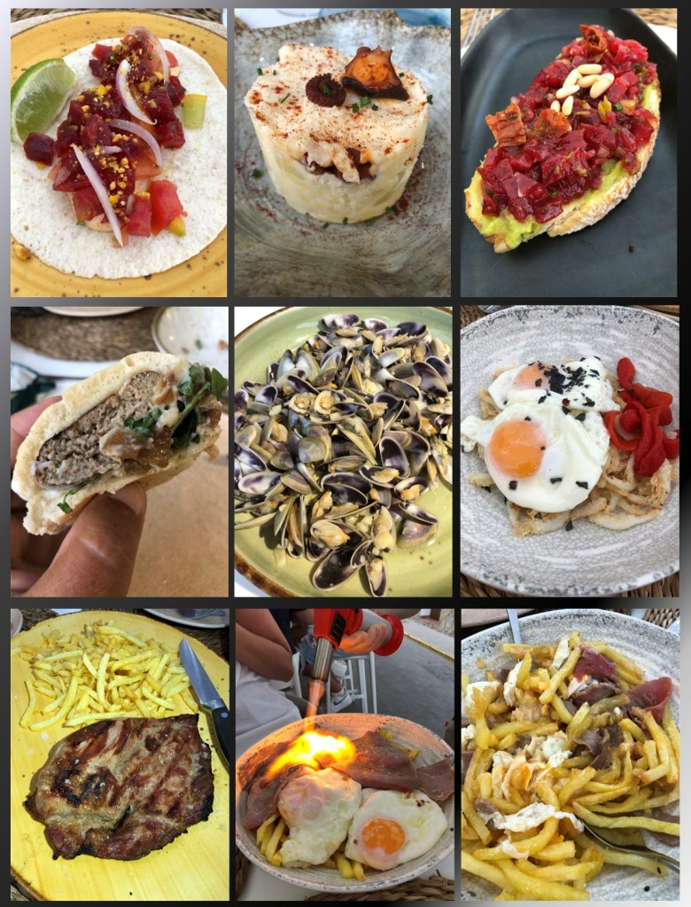 Hay clásicos que siempre repetimos, el Tá Cojonudo, la tosta Picantona, la barriga de atún del Tá Flambeao o las gambas cristal con huevos y pimientos. La Mini hamburguesa de atún, ensaladilla de pulpo, tortillitas, cazón…..y algo de cerdo ibérico como la Pluma fuera de carta de este año suelen conformar nuestras comandas.