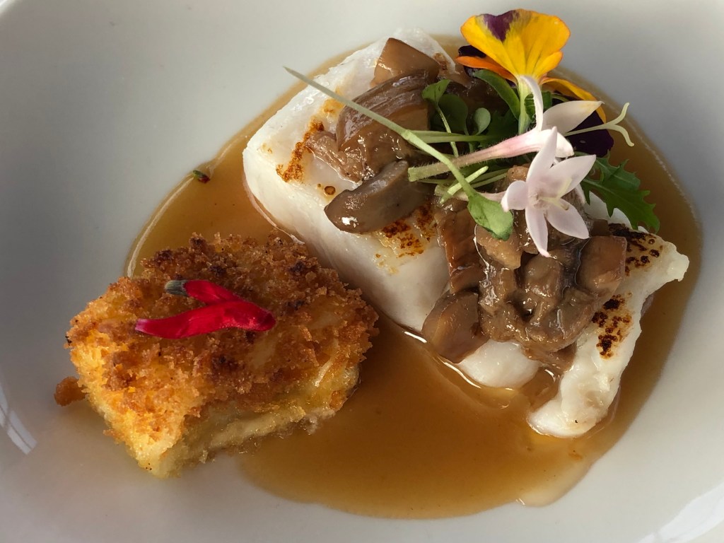 Al final no pudo ser y mi compañera Lucía ganó el concurso con su mar y montaña, una merluza sobre un fondo oscuro, coronada con unos boletus y acompañada de una croqueta líquida de queso Casín. Fue una jornada muy divertida con un montaje espectacular en la zona de ocio del Centro Comercial Intu, hubo numeroso público y el jurado formado por Natalia de Masterchef 7, Pepe Rodríguez del Bohío, Pedro Morán de Casa Gerardo y Luis Alberto Martínez de Casa Fermín supongo lo disfrutó tanto como nosotros. Me queda el resquemor de que mi plato no lo degustaron tal y como lo había planteado, no vertieron la salsa sobre las verdinas con lo que se perdieron ese punto que ligaba el conjunto.
