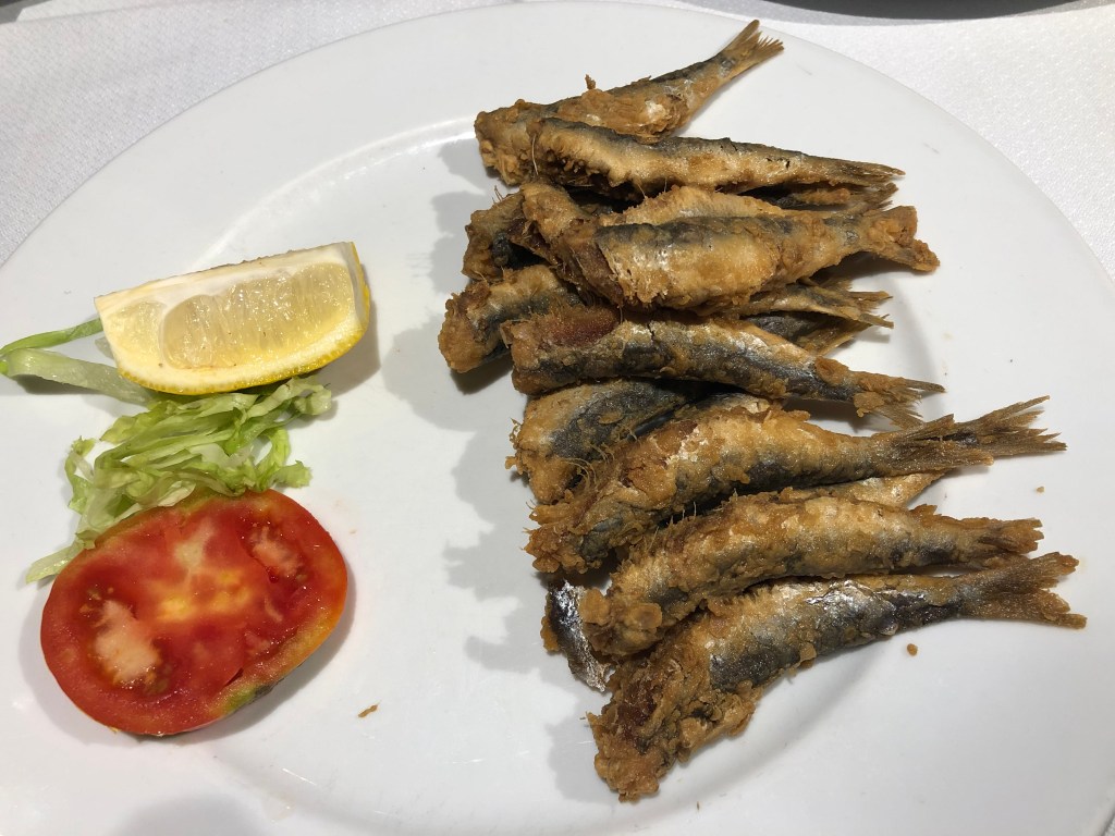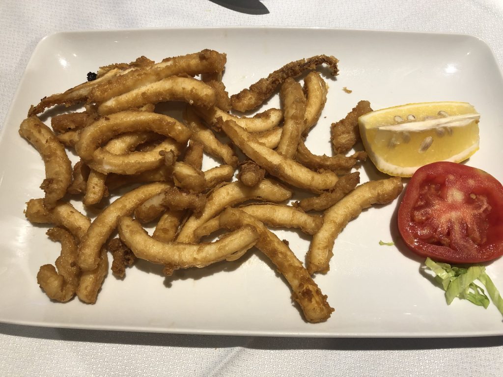 Tras el aperitivo cortesía de la casa compartimos unos bocartes y unos calamares de potera excepcionales.