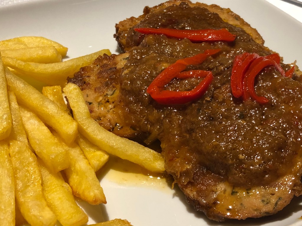 En la carta la variedad de carnes es exigua y testimonial, al fin y al cabo estamos en un restaurante marinero. Junto con el cachopo y la chuleta de ternera nos ofrecieron la posibilidad de unos escalopines.