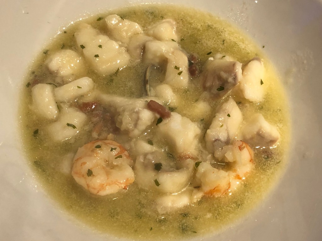 El pixin (rape) «a la Pixueta» (oriundos de Cudillero) y el mencionado cogote de merluza fueron el resto de platos de la comanda.