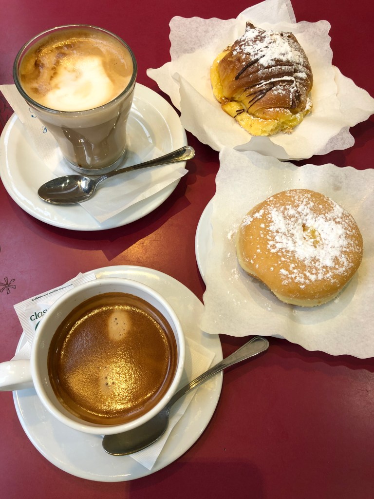 Ocho de la mañana y ya estamos en ruta, cambiamos la orientación en Via del Corso y nos vamos al otro extremo opuesto a la Piazza del Popolo, se trata de la Piazza Venezia donde el imponente monumento a Vittorio Emanuele II nos recibe y decidimos desayunar. Conscientes del futuro sablazo nos sentamos en una mesa del Bar Brasile, somos españoles y nos gusta desayunar con calma y a ser posible sentados, un expresso doppio, caffe latte y dos piezas de bollería por 17€ acaban de despertarnos porque hay que frotarse bien los ojos cuando ves la cuenta.