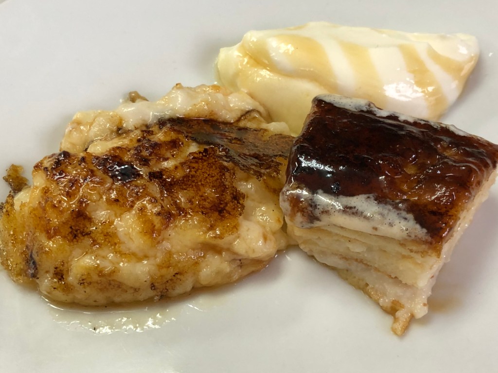Llega el queso La Peral por si aún queremos seguir dándole al pan, el requesón con miel, la tarta de frixuelos y el arroz con leche requemado del que no me resisto a repetir.