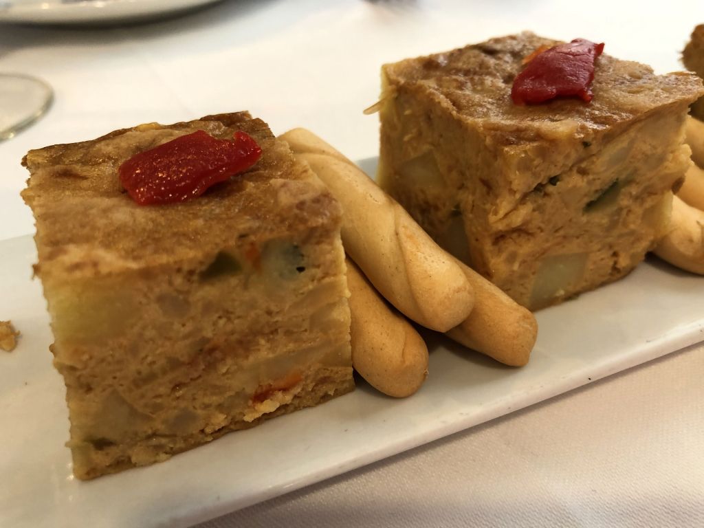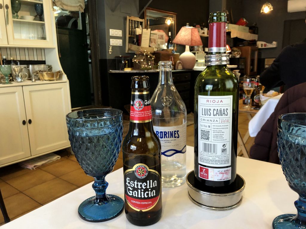 Para beber una botella de Luis Cañas, una Estrella Galicia y agua asturiana de Borines. Si que eché en falta alguna variedad de cerveza artesana, a pocos kilómetros en Langreo está la fábrica de Caleya. Mientras esperábamos nos pusieron una tapa con una tortilla paisana.