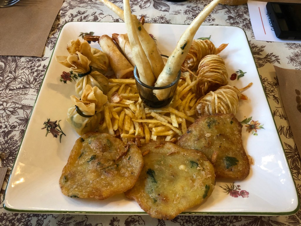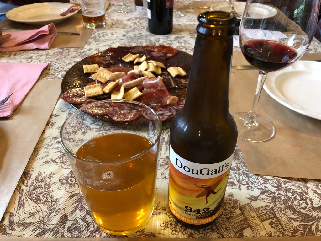 Comenzamos con unas croquetas de jamón, unos embutidos variados de gran calidad y un surtido de frituras del mar . Estando en Cantabria fui fiel a mi Dougall’s IPA.