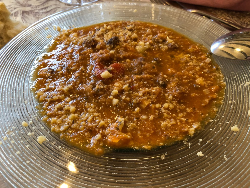Según la elección de cada uno pudimos disfrutar de carnes de vaca de la tierra en versión solomillo o chuleta, unas migas de bacalao, un crep de centollo guisado o una merluza en salsa verde.