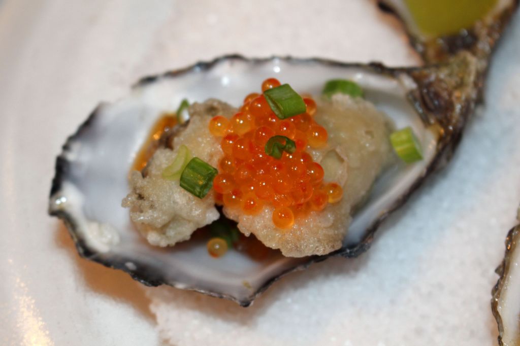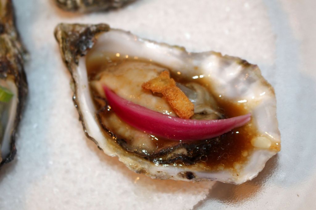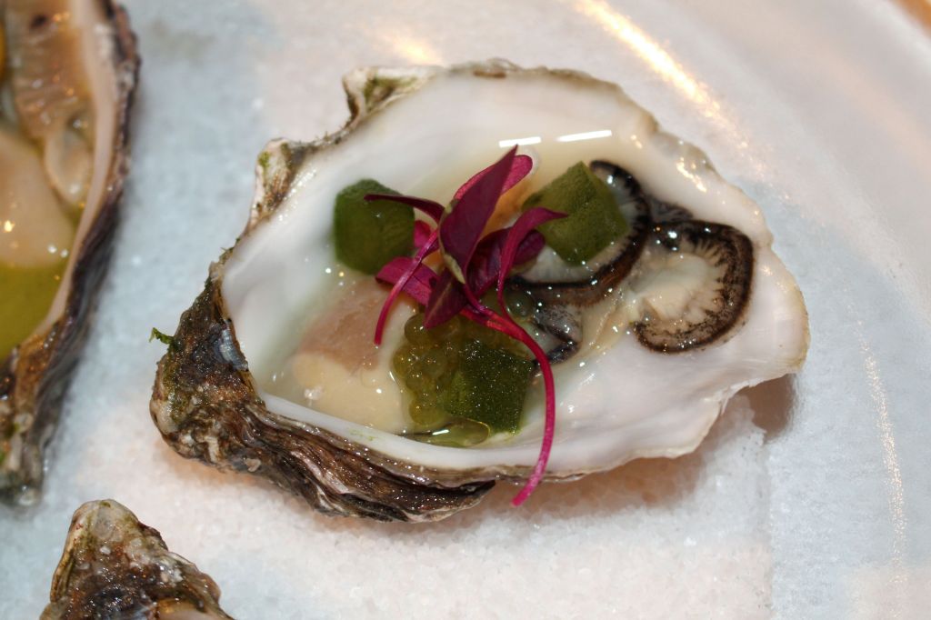 Por mi parte, habiendo ostras y teniendo la garantía del sitio donde nos encontramos, no dudé en pedir el plato de ostras que se compone de cuatro unidades que podemos combinar al gusto. Exceptuando la natural y la que lleva caviar elegí el resto, una de cada: con licuado de aceituna y gel de vermú, con escabeche de manzana, frita con toques asiáticos y guisada en jugo de pitu, pan de maíz y cebolla roja. Todas las combinaciones resultaron fabulosas y la calidad y carnosidad de la ostra, de Champion League.