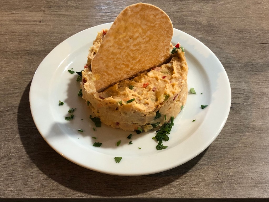 Comenzamos con una simpática ensaladilla que llama la atención en colorido y sabor por llevar mezclada una típica vinagreta.