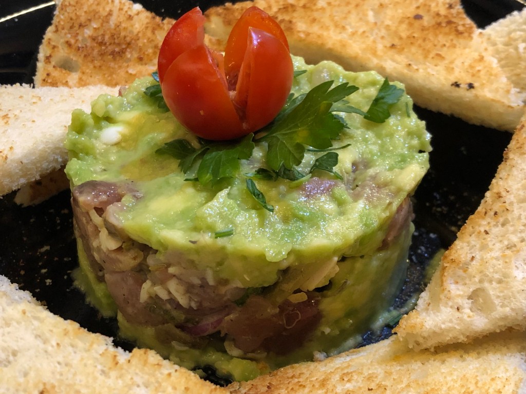 Llega el turno del tartar de atún, quizás el plato más flojo. Exceso de aguacate, atún yellow fin y un pan de molde tostado que funciona peor que un pan cristal.