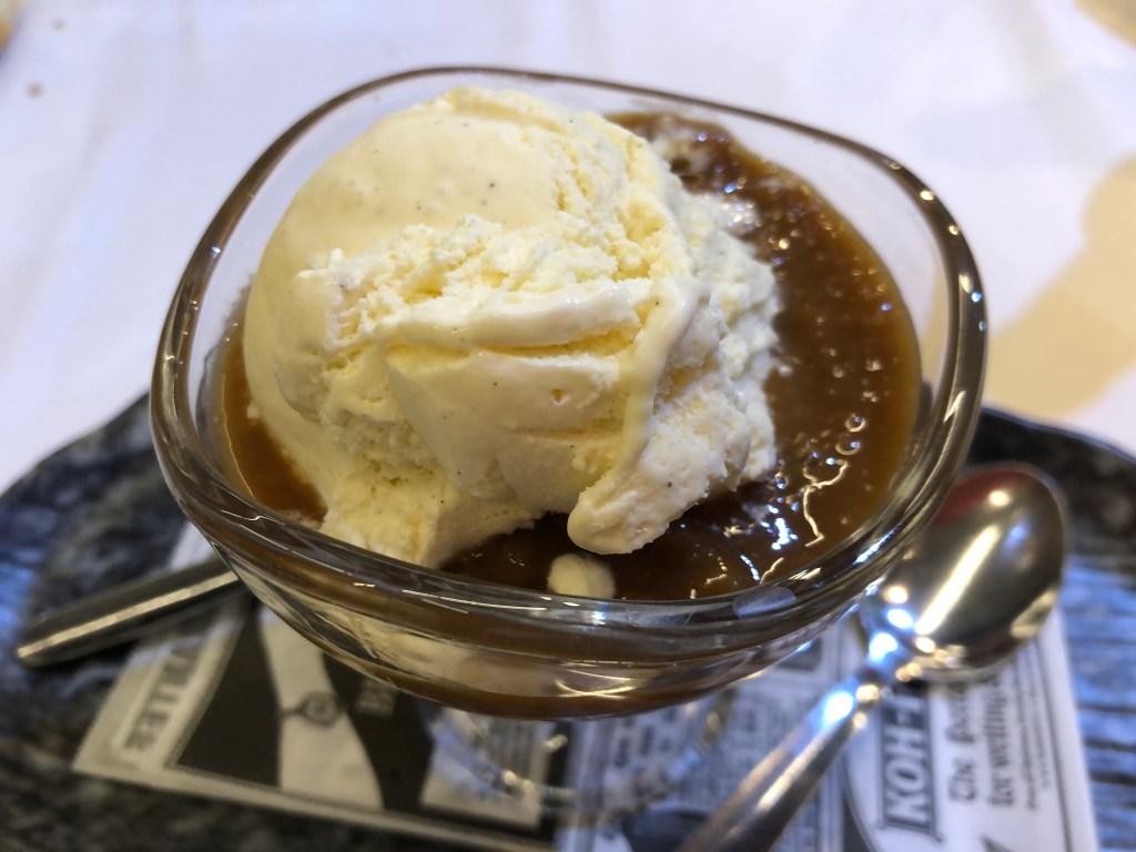 Para el postre me apetecía probar también algo típico y me incliné por el bienmesabe que acompañan con helado de vainilla. Un postre delicioso y sencillo cuya base es almendra molida tostada, un almíbar aromatizado con canela y limón, yemas de huevo y a veces un poco de ron. En la misma línea que Casa Pachi, los 57€ que incluían un par de cervezas nos resultaron muy aquilatados.